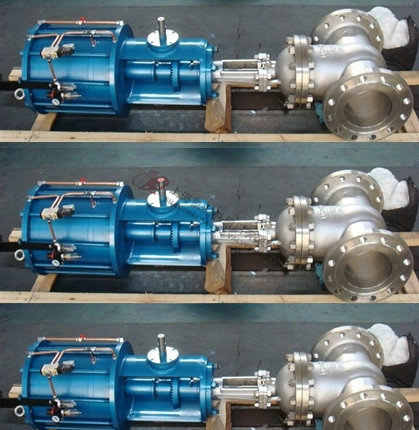 1、本閥主要由閥體、閥蓋、閘板、閥桿、密封圈、雙層氣缸及其活塞、活塞桿、隔板連同緩沖機(jī)構(gòu)、手動(dòng)機(jī)構(gòu)、氣動(dòng)-手動(dòng)轉(zhuǎn)換裝置和閥蓋填料裝置等部分組成。