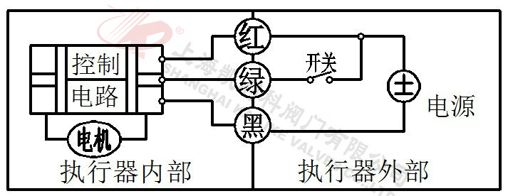 2、當(dāng)綠線開關(guān)閉合,閥門打開,到位后執(zhí)行器內(nèi)部自動斷電。