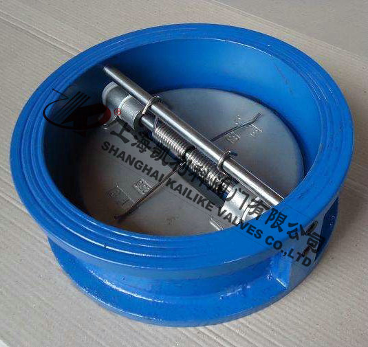 H76H、H76W、H76X對夾雙瓣蝶式止回閥由閥體、閥瓣、閥桿及彈簧等零件組成,采用對夾連接。由于閥瓣的關閉行程短,并且有彈簧加載,可顯著減少水錘現象。該閥主要適用于城市、工業(yè)及高層建筑給水、排水管網上。由于其結構長度比一般止回閥短,對有安裝空間限制的場所最為適用。