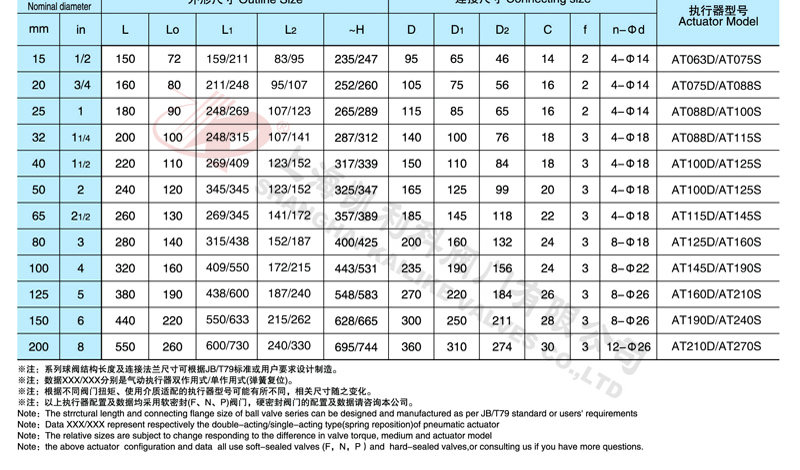 采用新型系列氣動(dòng)執(zhí)行器,有雙作用式和單作用式(彈簧復(fù)位),齒輪齒條傳動(dòng),安全可靠;大口徑閥門采用系列AW型氣動(dòng)執(zhí)行器拔叉式傳動(dòng),結(jié)構(gòu)合理,輸出扭矩大,有雙作用式和單作用式。