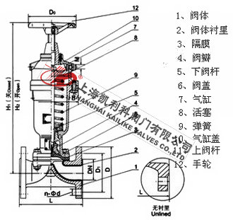 8、視膠隔膜閥的閥體內(nèi)腔表面視復(fù)有廳供選擇的多種橡膠。因此具有優(yōu)越的耐腐蝕的特點(diǎn)。