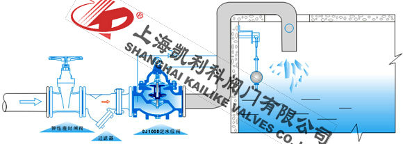 100D定水位閥是一種隔膜式調(diào)節(jié)水箱和水塔液面高度的閥門。閥門由浮球控制,當(dāng)液面達到設(shè)定高度時閥門通過相關(guān)結(jié)構(gòu)將信號傳遞給水泵,水泵停止供水;當(dāng)液面低于社定位置時水泵自動啟動供水。