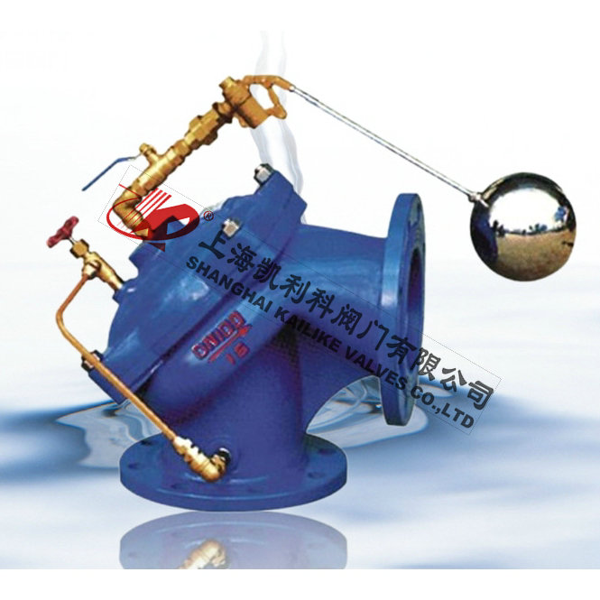 100A角型定水位閥是一種隔膜式調(diào)節(jié)水箱和水塔液面高度的閥門。閥門由一特殊強(qiáng)化尼龍膜片將其分為上下兩個腔室,當(dāng)液面達(dá)到設(shè)定位置時,浮球?qū)чy關(guān)閉,上腔壓力大于下腔,閥門關(guān)閉,即停止供水.當(dāng)液面下降超過預(yù)設(shè)位置,浮球?qū)чy開啟,上腔壓力小于下腔壓力,閥門開啟.閥門向池內(nèi)供水。