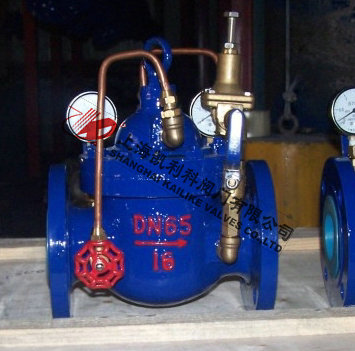 900X消防緊急關(guān)閉閥當(dāng)出口壓力低于導(dǎo)閥設(shè)定的壓力時(shí),導(dǎo)閥此時(shí)處于開通狀態(tài),主閥上腔壓力與主閥出口壓力相等,進(jìn)口與吃口存在壓差,水流經(jīng)閥口出口流出,當(dāng)消防泵氣泵時(shí),或變平泵壓力升高時(shí),超過導(dǎo)閥設(shè)定壓力,由主閥進(jìn)口向?qū)чy管控制室壓力升高,作用在彈簧壓力增大,向下壓緊,帶動(dòng)閥芯下移,使導(dǎo)閥關(guān)閉,此時(shí)主閥進(jìn)口壓力通過節(jié)流閥補(bǔ)充到主閥閥蓋上腔,因閥瓣受到向下壓力大于向上推力,主閥關(guān)閉。值得注意的是,進(jìn)口壓力小于設(shè)定壓力是,主閥處于開啟狀態(tài),進(jìn)口壓力大于設(shè)定壓力,閥瓣關(guān)閉。