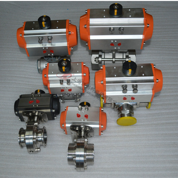 采用新型GT系列或AT系列氣動執(zhí)行器,有雙作用式和單作用式(彈簧復(fù)位),齒輪傳動,安全可靠;大口徑閥門采用AW型系列氣動執(zhí)行器拔叉式傳動,結(jié)構(gòu)合理,輸出扭矩大,有雙作用式和單作用式。