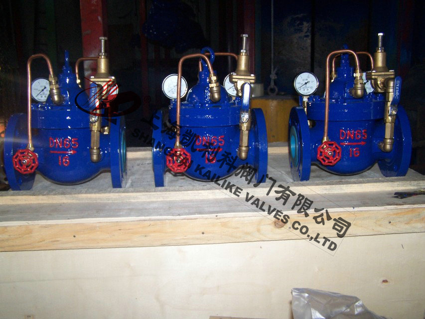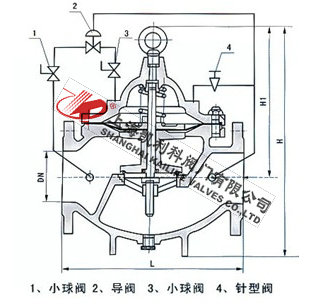 900X緊急關(guān)閉閥當出口壓力低于導閥設(shè)定的壓力時,導閥此時處于開通狀態(tài),主閥上腔壓力與主閥出口壓力相等,進口與吃口存在壓差,水流經(jīng)閥口出口流出,當消防泵氣泵時,或變平泵壓力升高時,超過導閥設(shè)定壓力,由主閥進口向?qū)чy管控制室壓力升高,作用在彈簧壓力增大,向下壓緊,帶動閥芯下移,使導閥關(guān)閉,此時主閥進口壓力通過節(jié)流閥補充到主閥閥蓋上腔,因閥瓣受到向下壓力大于向上推力,主閥關(guān)閉。值得注意的是,進口壓力小于設(shè)定壓力是,主閥處于開啟狀態(tài),進口壓力大于設(shè)定壓力,閥瓣關(guān)閉。