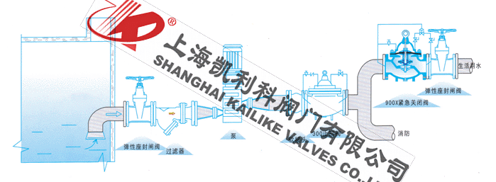 900X緊急關(guān)閉閥用于生活供水和消防供水并聯(lián)供水系統(tǒng)中,正常情況供生活用水,當火災(zāi)發(fā)生時消防用水時,閥門自動關(guān)閉生活用水,確保足夠的消防用水。當消防停止用水時壓力減少,閥門自動恢復(fù)生活用水,該閥使系統(tǒng)無須另設(shè)專門的消防單獨供水管網(wǎng),大大地節(jié)省了工程建設(shè)成本和日常的用水量。該閥控制靈敏、安全可靠、調(diào)試簡單、使用壽命長。